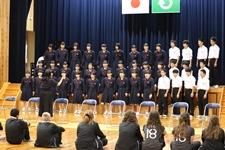 5校時は生徒会主催の歓迎セレモニーを行いました。茂木中からは日本の伝統文化である「柔道」「剣道」、「合唱」を披露しました。スピード・ウェイタウンの生徒達からは、アメリカ合衆国「忠誠の誓い」の暗唱とダンスを披露してくれました。