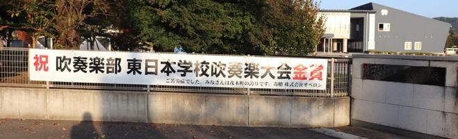吹奏楽部が東日本学校吹奏楽大会で金賞を受賞したことを記念して株式会社オベロン様より横断幕が寄贈されました。ありがとうございました。正門の前に設置してあるのでご来校した際はご覧下さい。