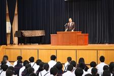 校長講話では、先日行われた郡市新人大会での各部の活躍と吹奏楽部の東日本大会出場に向けての取り組みから、自分たちで考え、反省し改善することを通してクラスや部活、学校全体がまとまってより良い茂木中をつくっていくことの大切さについてお話して下さいました。