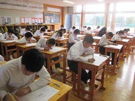 本日の1~3校時、明日の1・2校時にかけて2学期中間テストを行っています。生徒達は最後まで諦めずに一生懸命、問題に取り組んでいました。明日のテストもがんばって下さい。