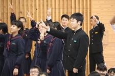 「茂木町民の歌」を斉唱しました。  茂木中の生徒が司会を行いました。