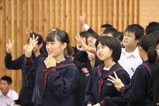 5校時は生徒会主催の歓迎セレモニーを行いました。茂木中からは日本の伝統文化である「柔道」「剣道」、「合唱」を披露しました。スピード・ウェイタウンの生徒達からは、アメリカ合衆国「忠誠の誓い」の暗唱とダンスを披露してくれました。