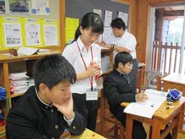 4校時の授業の様子です。茂木中の生徒と一緒に楽しそうに授業を受けていました。