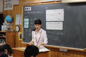本日の4時間目に教育実習生の山形先生の数学の研究授業が行われました。「速さの問題を方程式を使い解決する」という内容の授業で生徒達はペアで相談するなどして一生懸命、問題に取り組んでいました。明日は新人戦と吹奏楽部が東日本吹奏楽大会に向けて出発するので山形先生と会うのが今日が最後とう生徒もいます。山形先生、2週間お疲れ様でした。