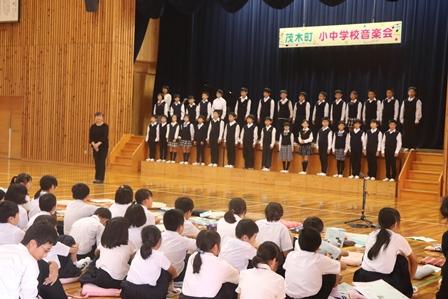 昨日、茂木町内の小中学生の合唱部員が集まり、音楽会が行われました。それぞれの学校が何度も練習を重ね、作ってきたハーモニーを聴かせていただきました。