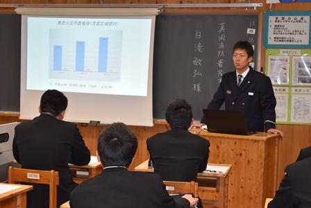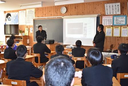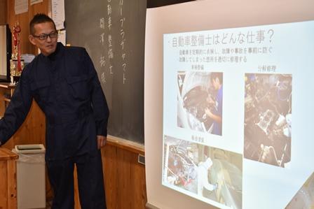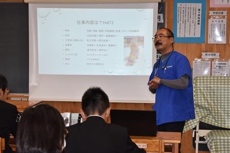 地域の職業人の方々が生徒に向けて、仕事の大切さや楽しさ、大変さなど、また、どのようにしたらその職業に就けるのかなどの話をしていただきました。