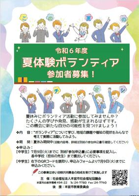 令和6年度「第30回夏体験ボランティア(サマーショートボランティアスクール)」を開催します!