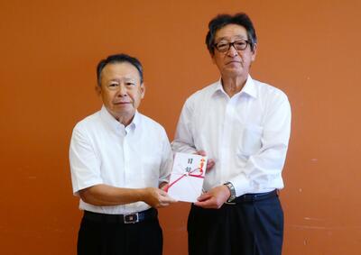 ◆芦間社協会長に寄付金の目録を手渡す アルス株式会社 代表取締役社長 大内勉 様(左)