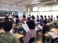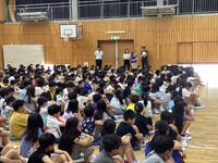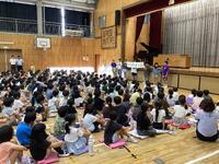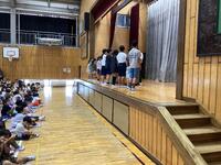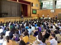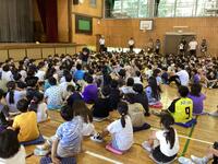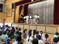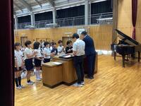 本日、昼休みに全校集会があり、表彰と音楽部の発表、今月の歌の練習を行いました。音楽部は6月14日に行われた東部公民館文化祭での素晴らしい発表を全校に披露しました。今月の歌では、「おおきな古時計」を全校一緒に歌いました。どの学年も声を揃えて上手に歌うことができていました。7月の歌は「にじ」なので、全校で大きな虹を架けられるよう元気いっぱい過ごしてほしいですね。