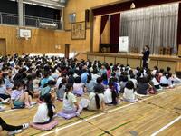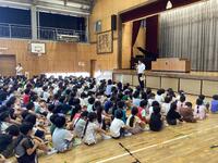 本日、松戸法人会青年部の方と落語家の雷門小助六師匠が来校され、6年生を対象に落語を交えながら税金について教えていただきました。プロの落語家さんの話に子供たちは釘付けで、想像力を働かせながら大いに笑っていました。また、税金についてスライドショーで説明を聞いた際には、学校生活で小学生に係る一人当たりの税金が100万円近くになるということを知り、改めて「有難い」という気持ちを持てた子が多くいました。今回の経験を、これからの人生に活かし、より良い社会になるよう活躍してほしいです。