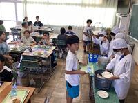 本日から、通常日課が始まりました。子供たちが楽しみにしている給食も今日からスタートです。2学期1回目は「夏野菜のスパイスキーマカレーとソーダフロートゼリー」でした。給食の時間に教室を回ると、子供たちの嬉しそうな表情が沢山見られました。おかわりの列に並ぶ子や、大事そうにデザートを食べる子など、もりもり食べて元気いっぱいの東っ子たちでした。