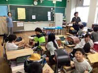 本日、地区社協の方々をお招きして、昔の道具に関する学習を行いました。実物を見たり触ったりすることで、昔の道具に興味をもつことができました。着物や袢纏を着る中で、「意外と動きづらい」「昔の人は大変だけど工夫もあるんだ」と、今との暮らしの違いを実感していました。今後は、総合的な学習の時間で衣・食・住それぞれの昔の道具について調べ学習を行う予定です。自分たちの生活と昔の暮らしを比べながら、より深く考えていきたいと思います。