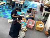 本日、図書ボランティアの活動がプレイルームで行われました。学級文庫にする本の仕分けや本の修繕を中心に行ってくださいました。夏休みが終わり、貸し出していた図書も返却されたので、学校図書館の活動も本格的にスタートとなります。夏休み中に届いた新書の味見読書を予定しています。2学期も子供たちが読書に親しめるようボランティアの方々と環境を整えていきたいです。
