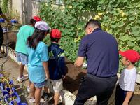 4年生は理科の授業の一環でツルレイシとひょうたんを育てています。種から発芽したら職員室前の花壇に植え替えをしています。今後はきれいに花が咲き、大きな実をつけ、子どもたちの身長を超えるほど大きく成長してほしいです。