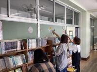 1学期も終わりに近づき、学校図書館では、夏休み中の貸し出しに備えて返却が進んでいます。6月の図書委員会の取り組みとして、本を読んだ子供たちの名前が虹となり、その上に大阪万博のキャラクター「ミャクミャク」が登場しました。登場した時は図書館前に大歓声がとどろきました。また、7月は七夕なので、子供たちの願いの短冊が飾られています。一人ひとりの願いが叶いますように。日々学校図書館の整備を図書ボランティアの方々が行ってくれています。1学期もありがとうございました。