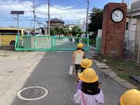 本日、1年生がやまびこ公園へ探検に行きました。暑い中での活動となったため、休憩を適宜とりながら活動しました。今回はグループで遊びを決めたり、まとまって「こうえんたんけんビンゴ」をしたりして楽しみました。行き帰りの道では、列を崩したり、前の人と離れたりすることなく、安全に気をつけて歩くことができました。