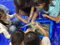本日の5時間目に体育館で食育の授業が行われました。水産庁の方とその関係者の方々が来校され、魚についての話をしてくださいました。子供たちは実物の魚を見たり触ったりして、大喜びでした。初めての本物の魚に恐る恐る手を伸ばす子、ためらわず触れる子など様々でしたがとても貴重な経験をさせていただきました。今回の学習を行ったことにより、魚を身近に感じ、食べる機会が増えていってくれると嬉しいです。