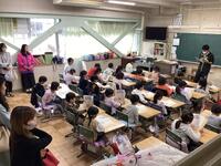本日、2,3,4時間目に理科室で花育の授業が行われました。小学生にお花と触れ合う機会を持ち、少しでもお花に興味を持ってほしいという県の取り組みにより、花育の授業を行っていただくことができました。花育の授業では、お花についてのクイズに答えたり、生け花の体験をしたりしました。生け花の体験では、「一花一葉」ということで、ガーベラの花とハランの葉を使って生け花を行いました。葉を裂いたり、巻いたり、結んだりしながら一生懸命花を生けようとする姿が見られました。自分が生けた花を持って帰れると聞いたときにはどの児童もとても喜んでいました。家でもきれいな姿を維持できるよう、心を込めてお世話をしてほしいですね。