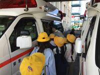本日、3年生が社会科の授業の一環として流山東消防署へ見学に行きました。消防署では、救急車や消防車の車両見学、消火体験、防災についてのDVD観賞の3つのブースに分かれて見学をしました。消防隊員の方々に車両に取り付けられている道具の説明をしていただいたり、同じような消防車でも名前が違い、使い道も異なることを教えていただいたりしました。子供たちも間近で見る車両に迫力を感じており、普段聞けない消防隊員の方々のお話にしっかりと耳を傾けて聞くことができていました。消火体験も行い、子供たちは初めて触る消火器に興味津々で、「思っているよりも重かった」や「消防士さんってすごいんだな」などの感想もありました。子供たちの中に将来、消防隊員になりたいと思った人がいたら、うれしいですね。