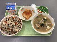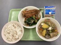 今日の給食は「ご飯」「鰯の蒲焼き」「小松菜の海苔和え」「さつまいもの豚汁」でした。千葉県で採れた食材を千葉県で消費する『千産千消デー』ということで、千葉県産のものを使ったメニューでした。さらに、今日の豚汁に使われていた「さつまいも」は4年生が春から育て、先日収穫してきた「さつまいも」でした。給食の時間には栄養教諭が作った今日の給食にまつわるクイズを楽しみました。そこで今日使われている「さつまいも」が4年生が作ったものだと知り、子供たちは大変喜んでいました。全校で大変美味しくいただきました。
