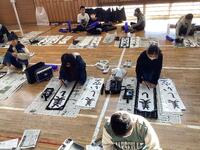 12/10 5、6年生書き初め練習 投稿日時 : 15:41 サイト管理者 カテゴリ: 本日5、6年生の書き初め練習が体育館で行われました。相原先生の指導の下、5年生は「美しい空」6年生は「新春の朝」を一生懸命書いていました。なかなか思うように書けず苦労していた児童もいましたが、最後まで集中力を切らさずに書き終えることができました。書道は集中力や精神の安定、自己表現力を高める「日本の心」を表現する芸術です。これから先もこの文化を子どもたちには受け継いでいってほしいですね!