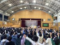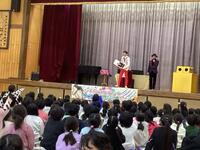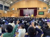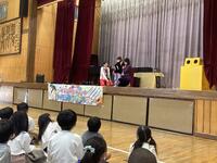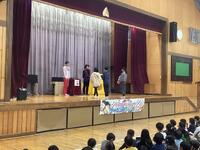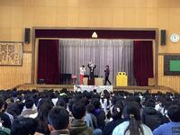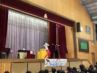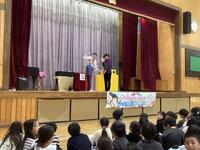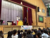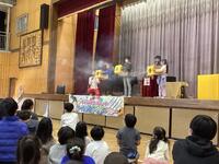 本日、キャラメルマシーンのお二人が東小学校に来てくださいました。「サイエンスマジックショー」ということで、学びあり、驚きあり、笑いありで大変盛り上がりました。マジックの随所にお笑いと科学的な内容を織り交ぜてくださり、子供たちも飽きることなく、1時間集中して参加していました。途中では、マジックのお手伝いとして、何人かの東っ子が参加することができました。これからも「なんでだろう?」を大切に、様々なことを「やってみる」という気持ちを持っていってくれると嬉しいです。充実した芸術鑑賞会となりました。
