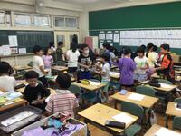 本日、2年生と4年生のふれあい遊びの会が行われました。今日に向けて4年生は、どうしたら2年生が楽しんでくれるかを一生懸命考え、話し合っていました。今日は熱中症警戒アラートも発令していたので、外での活動はせず、室内で楽しめるレクリエーションをしました。2年生は4年生の話をよく聞き、4年生は初めてのふれあい遊びの進行を一生懸命頑張っている姿が見られました。これからも学年関係なく仲良くしてほしいですね。