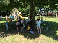 本日、1年生がやまびこ公園へ探検に行きました。暑い中での活動となったため、休憩を適宜とりながら活動しました。今回はグループで遊びを決めたり、まとまって「こうえんたんけんビンゴ」をしたりして楽しみました。行き帰りの道では、列を崩したり、前の人と離れたりすることなく、安全に気をつけて歩くことができました。