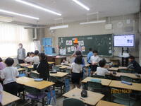 簡単なあいさつの方法や先生の名前などを手話で確認しました。時間が経つにつれて、「これはどうやって手話でやるのですか?」という質問が増えてきました。短い時間で吸収できる4年生はすごいです!