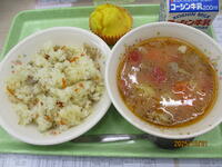 給食にはハロウィーンにちなんだパンプキンマフィンが出ました!カボチャのような鮮やかな色です!