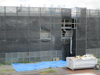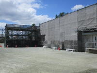 なお、体育館も工事を行っております。現在は屋根の工事を行っているので校庭に大きな足場がつくられています。