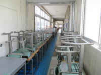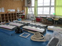 そのため、校舎内にあった机や教室の荷物は普段使っている教室や廊下に大移動です。各教室のエアコンも一度取り外しています!
