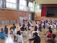5年生が体育館で学年集会を行っていました。