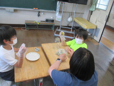 なかよし学級では、今が旬を迎えている梅の実を使って、梅シロップ作りにチャレンジしていました。