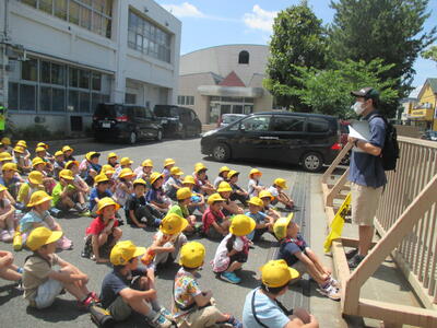 昨日予定していた1年生の公園探検でしたが、突然の降雨のため今日に延期となりました。子ども達の中には、今日のために家でてるてる坊主を創ってお願いしていた子もいたとのことでした。