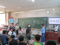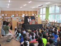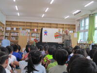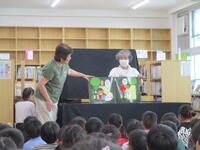 今日はいつもは朝の読み聞かせをしてくださる栞の会のみなさんが、1,2年生を対象におはなし会のスペシャルを行ってくれました。