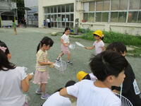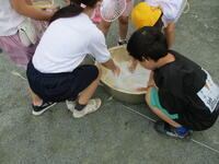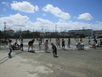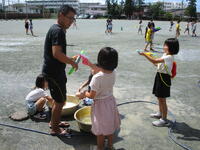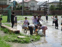 水をかけたり、浴びたり、先生を追いかけて水をかけたり・・・