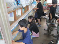 3年生が、机の上にもう着られなくなった服を広げてフリーマーケットを・・・
