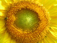 草丈は2mを超えるくらい成長しています。近寄ってみると、黄色い花に虫が足を運んでいるようです。