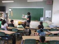GWが終わり、学校の日常が戻ってきました。いろいろな授業をみるとしっかり授業に取り組んでいました。外では4年生が理科の授業で、外で1日の気温の変化を測定し、記録していました。グループごとに温度計とにらめっこしながら正確な値をしっかりと記録していました。
