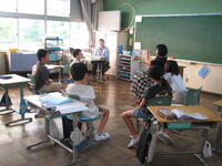 梅雨の中とはいえ、暑さが急に厳しくなってきました。しかし、教室では一生懸命授業に取り組んでいる子ども達がいっぱいです。5年生の教室では算数が行われていました。子ども達が苦手とする文章題をどう考えたら良いか、熱い説明がされていました。また、社会では沖縄について学習していました。自分たちで課題を調べたりして一生懸命まとめていました。校庭に目をやるとゆりの木学級がドッジボールをしていました。暑い中ですが熱いゲームを展開していました。ゲームが一段落すると、木陰に入って水分補給をしっかり行っていました。これからますます暑さが増してくると思いますが、教室や体育館ではエアコン、外では適切な休憩と水分補給をしながら、授業を頑張りましょう。