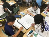 指導には東京理科大の学生さんが来てくれて、作り方を教えてもらいながら、思い思いの模様をかきました。