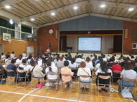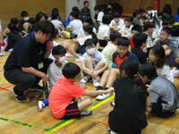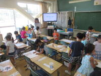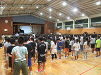 もうすぐ夏休みです。体育館では4年生がレクで玉入れを楽しんでいました。どうやら子ども達の発案だったようですが、みんなで楽しむことができることということで企画したのだろうと思います。”チェッコリ玉入れ”で体育館から歓声が響いていました。真夏のこの暑さの中でもエアコンのおかげで体育館の中はひんやりでした。