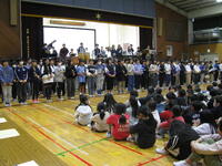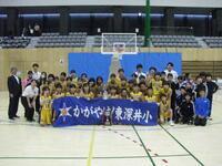 明日行われれる市内ミニバスケットボール大会に向けて、励ます会が行われました。会の中では、練習の様子などの紹介があり、児童全員で応援をしました。ちょっと緊張気味の選手達でしたが、次々と決まるシュートに期待が持てました。がんばれ!がんばれ!