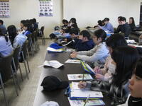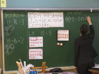 1年生の教室で算数の研修会が行われました。子ども達の課題は「12-3=9」です。この計算をどう考えたら良いか、これが子ども達の課題です。また、これを子ども達にどのように理解させていくか、これが先生方の課題です。子ども達は、自分で考えたり、発表したり、集中して授業に取り組んでいました。先生方は、授業後にどうしたらきちんと理解できるようになるか、たくさん話し合いました。