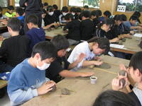 4年生の図工の授業では、彫刻刀を使って板を削り絵を描いています。下絵に沿って彫刻刀を走らせ、細かい線を一本一本丁寧に彫っている様子が見られました。デザインによっては本当に細かい作業を集中して黙々と掘っている児童がいて作品作りに熱中していました。完成がどんな作品になるのか楽しみです。
