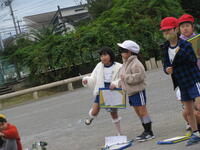 1年生と2年生が交流会を行いました。内容は”おもちゃ交流”です。この日のために、2年生が1年生のために手作りのおもちゃ(ブンブンゴマ 竹とんぼ)を作り、その遊び方も含め、1年生に教えていました。2年生は、一言一言やさしい言葉で1年生に教えていて「立派なお兄さん、お姉さん」と言った感じでした。そして教わっている1年生も笑顔、笑顔でした。会の終わりには、2年生から1年生へおもちゃの作り方や説明が入った説明書(?)がプレゼントされていました。(これも手作りで、1枚1枚違うそうです。)その光景にほのぼのと心温まる気がしました。