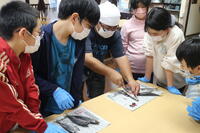 アジの開き方を教えてもらい、ひとり3匹作りました。