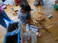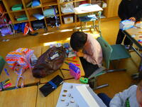 生活科では、前回の素材遊びに続いて、今日は「作る」活動に取り組みました。