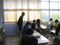 今日から1~3年生は5校時まで、4~6年生は6校時までの授業になります。校内の雰囲気としては、夏休み気分も終わりになってきたかなという状況です。今日は、授業に中学生が入りました。職場体験学習で来ている中学生です。将来は先生なりたい(?)とか。3年生と5年生の教室に入って、体験していました。また、4年生の図工の授業では版画のアイデアスケッチをしており、見本を見ながら「どうしようかなぁ」といろいろ考えていました。発想の豊かさがとても面白いです。